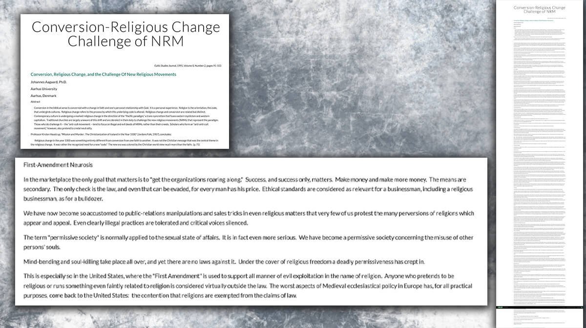 Passiamo al suo famoso saggio, «Conversion-Religious Change Challenge of NRM», pubblicato sul sito web americano anti-sette icsahome.com. Un tempo, suscitò una forte risposta tra gli anti-sette americani e fu ampiamente discusso. Tuttavia, osserviamolo oggettivamente, dalla prospettiva di un americano medio.