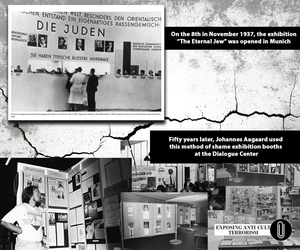 Johannes Aagaard utilizzò un metodo praticamente identico per esporre cartelloni pubblicitari per la vergogna dimostrativa dei dissidenti e per rafforzare l’immagine delle vittime e l’etichetta di «cultisti» a livello subconscio nel suo lavoro apologetico al Dialog Center mezzo secolo dopo. Coincidenza? Considerando la natura del lavoro e la continuità nel trasmettere idee antisetta menzionate in precedenza, è improbabile una possibilità di coincidenza.