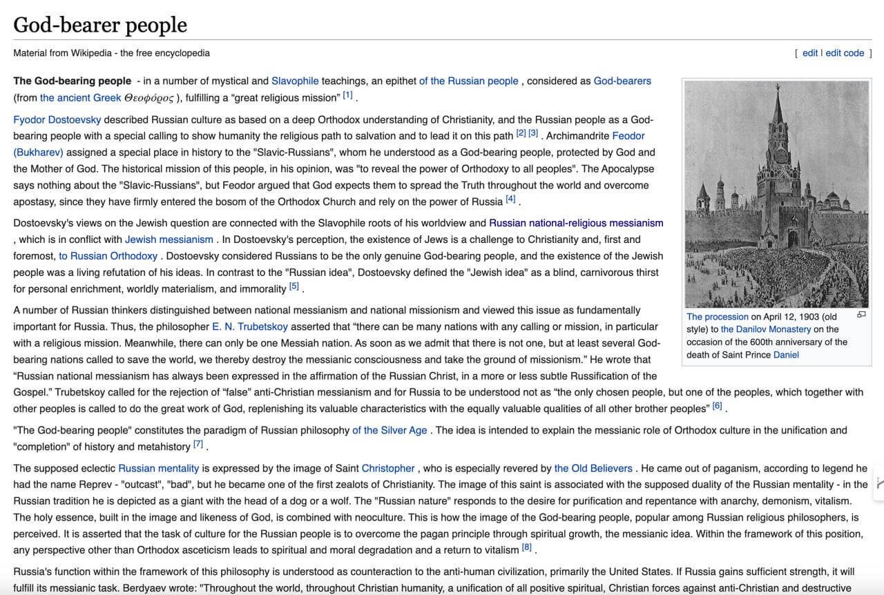 La “nazione portatrice di Dio” è un epiteto usato in numerose dottrine mistiche e slavofile per indicare il popolo russo come portatori di Dio (dal greco Θεοφόρος) che adempiono a una “grande missione religiosa”.