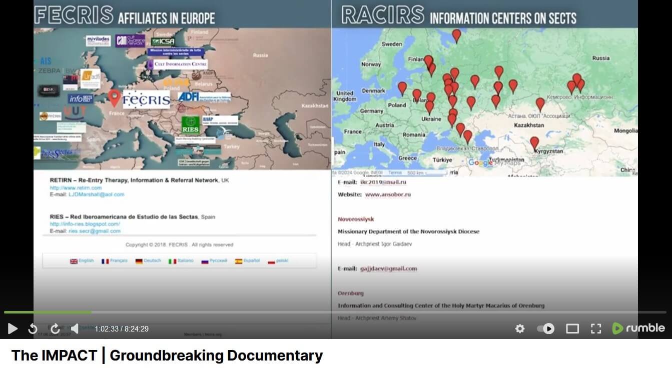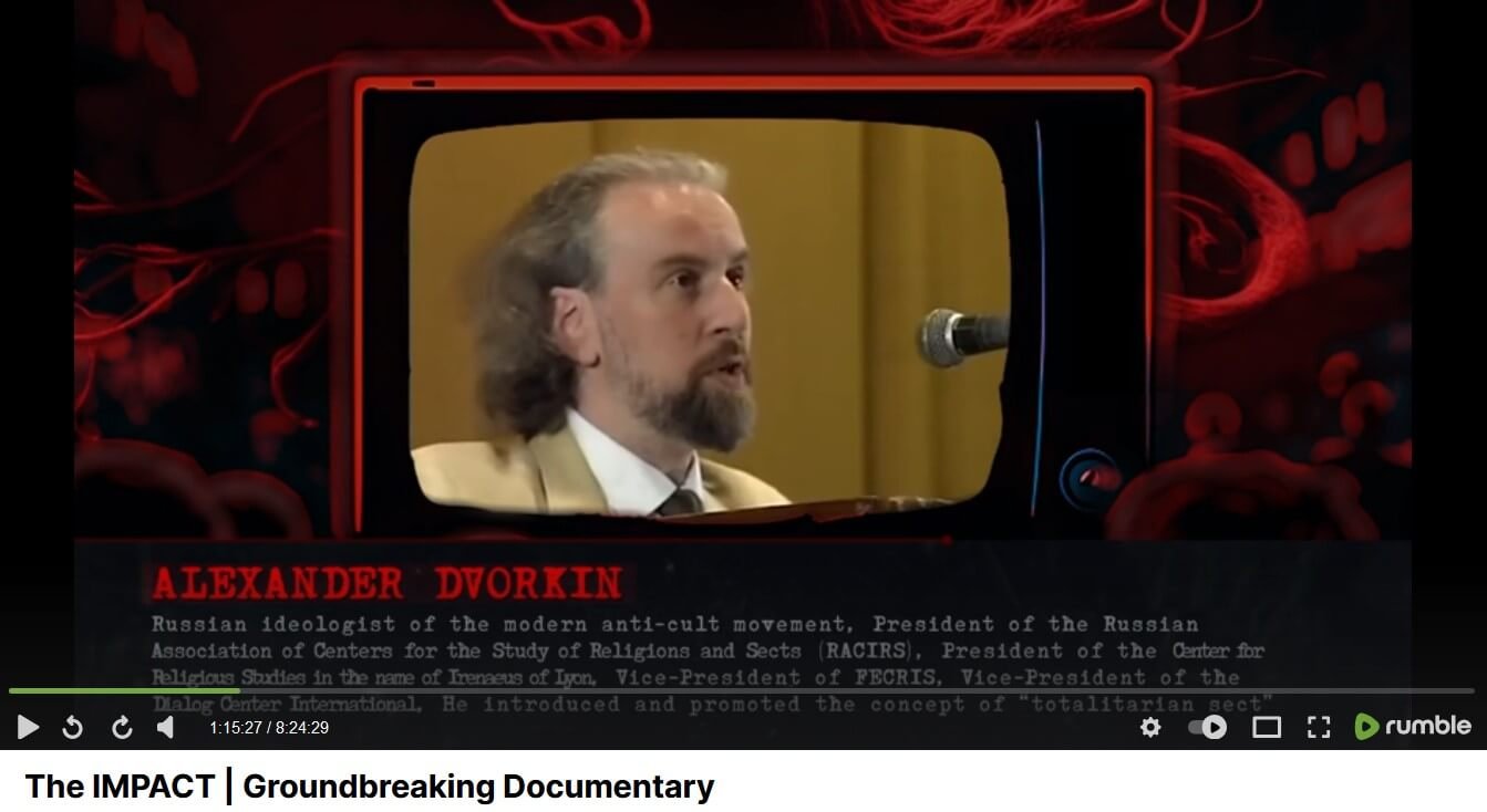 Le attività distruttive a lungo termine degli attivisti anti-sette guidati da Alexander Dvorkin e RACIRS vengono esaminate in dettaglio nel documentario The Impact, in particolare nella prima parte.