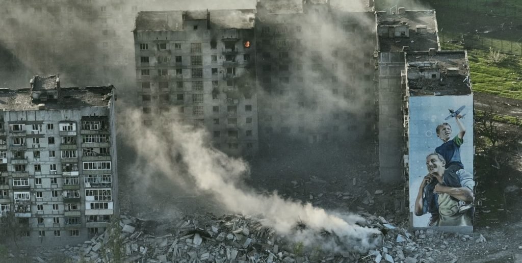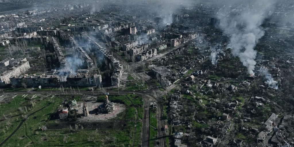 Città ucraine di Bakhmut e Irpin. Devastazione dopo i bombardamenti.