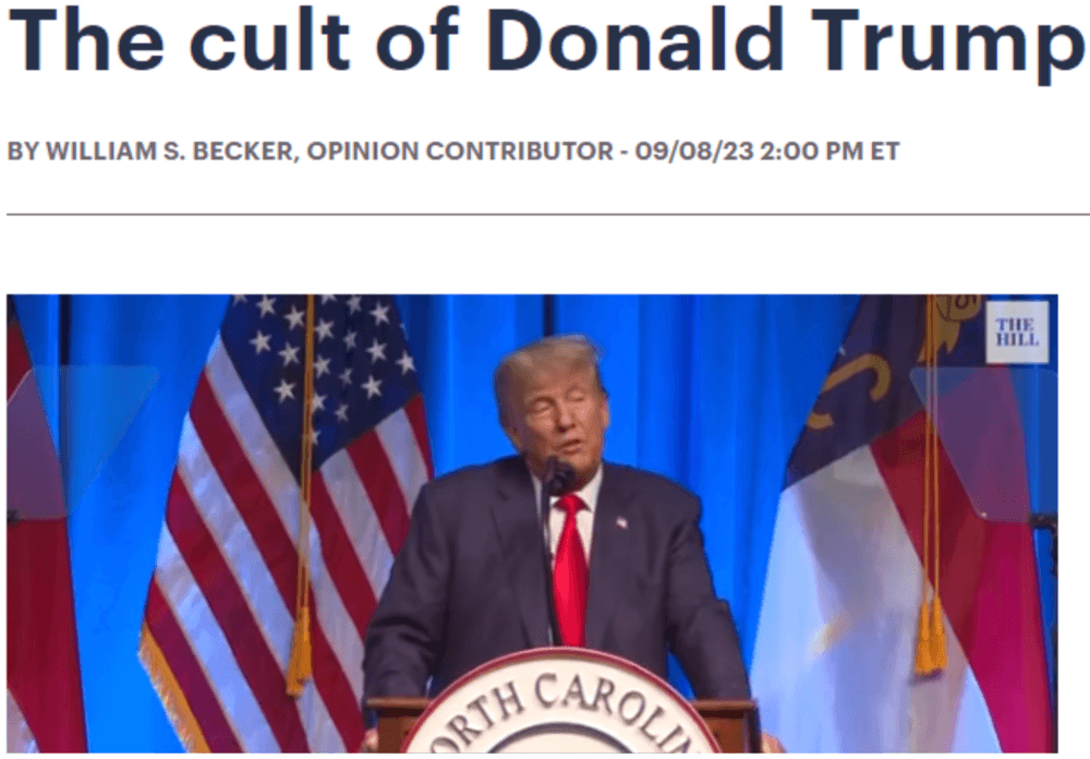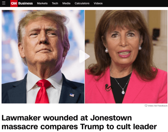 Ad esempio, Trump viene spesso paragonato al famigerato Jim Jones, fondatore del «Peoples Temple», spesso citato come esempio di un leader di una setta che ha portato centinaia di suoi seguaci al suicidio. Questo espediente retorico mira a creare forti associazioni nella mente del pubblico tra Trump e i leader delle cosiddette «sette distruttive», rafforzando così la narrazione del suo coinvolgimento nell’ideologia di una «setta distruttiva».